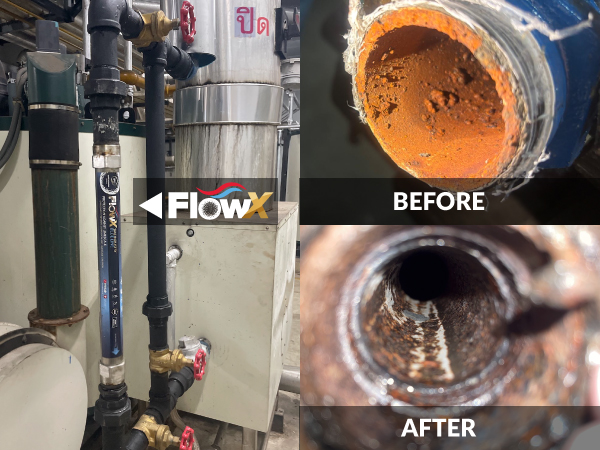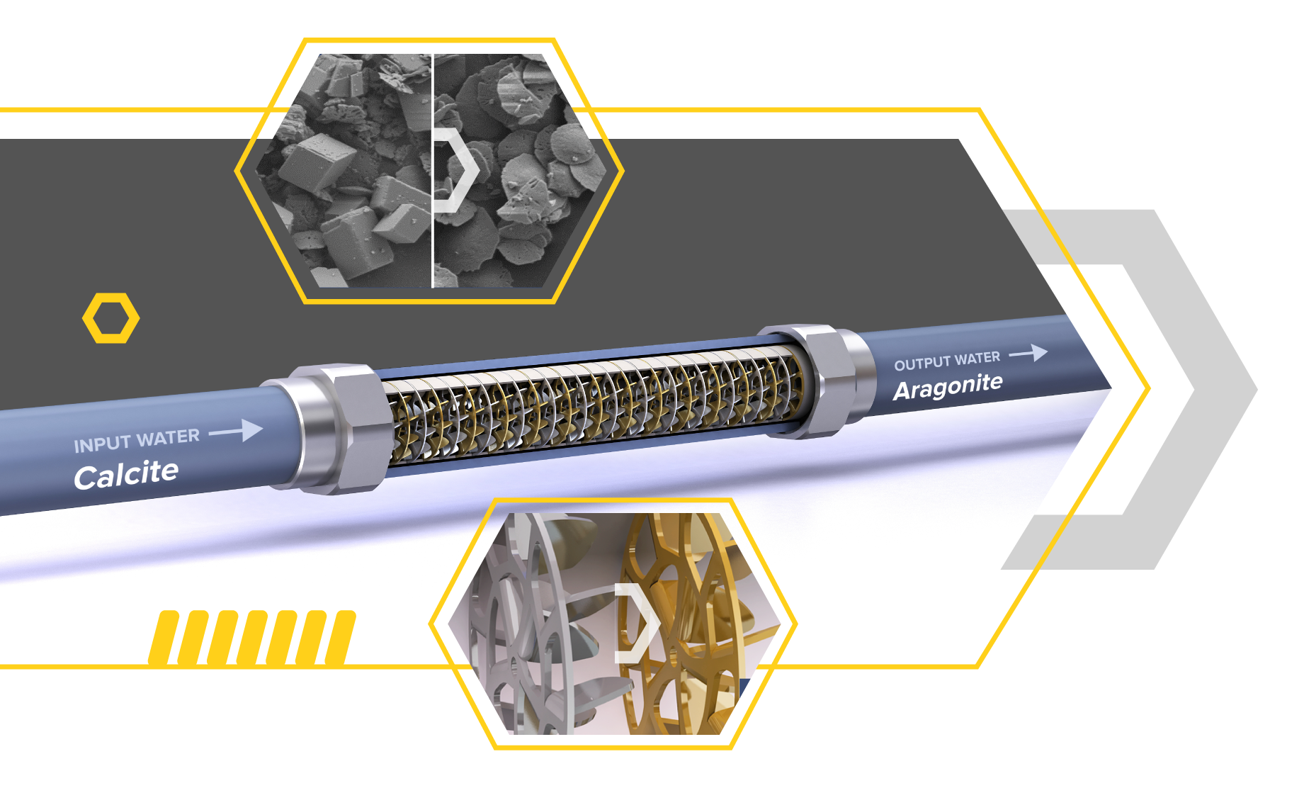FlowX® จะช่วยเปลี่ยนแปลงตะกรันหินปูนที่เป็นผลึกแคลไซต์ แข็ง (ซึ่งเกาะติดบนพื้นผิวได้ง่าย) ให้กลายเป็นผงอะราโกไนต์ (ที่มีการยึดเกาะต่ำ ไม่เกาะติดและไหลออกมาง่าย) และทำให้อุปกรณ์ของคุณทำงานได้อย่างมีประสิทธิภาพ