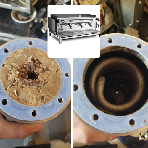 Stone around the heating coil made unwanted insulation inside. After removed, the coffee machine can heating up water waster, energy costs went lower and maintenance time was prolonged.