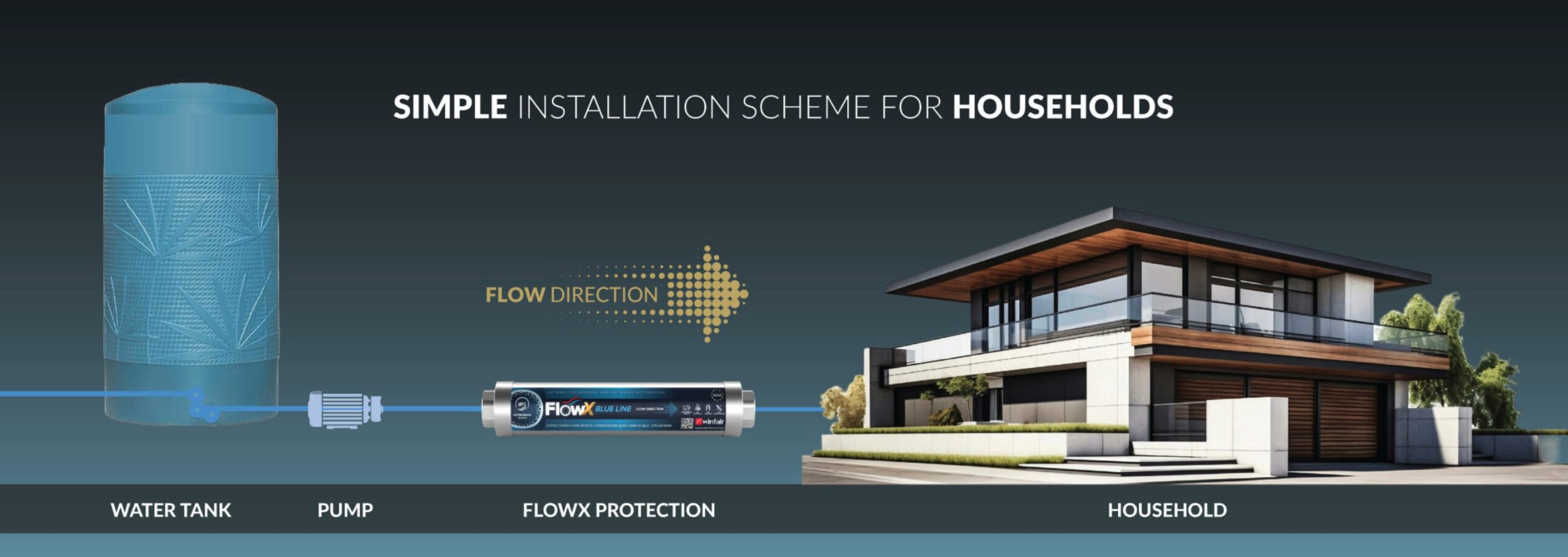 การติดตั้งท่อ FlowX สามารถติดตั้งได้ทั้งแนวตั้ง และ แนวนอน โดยแนะนำให้ติดหลังปั๊มน้ำ